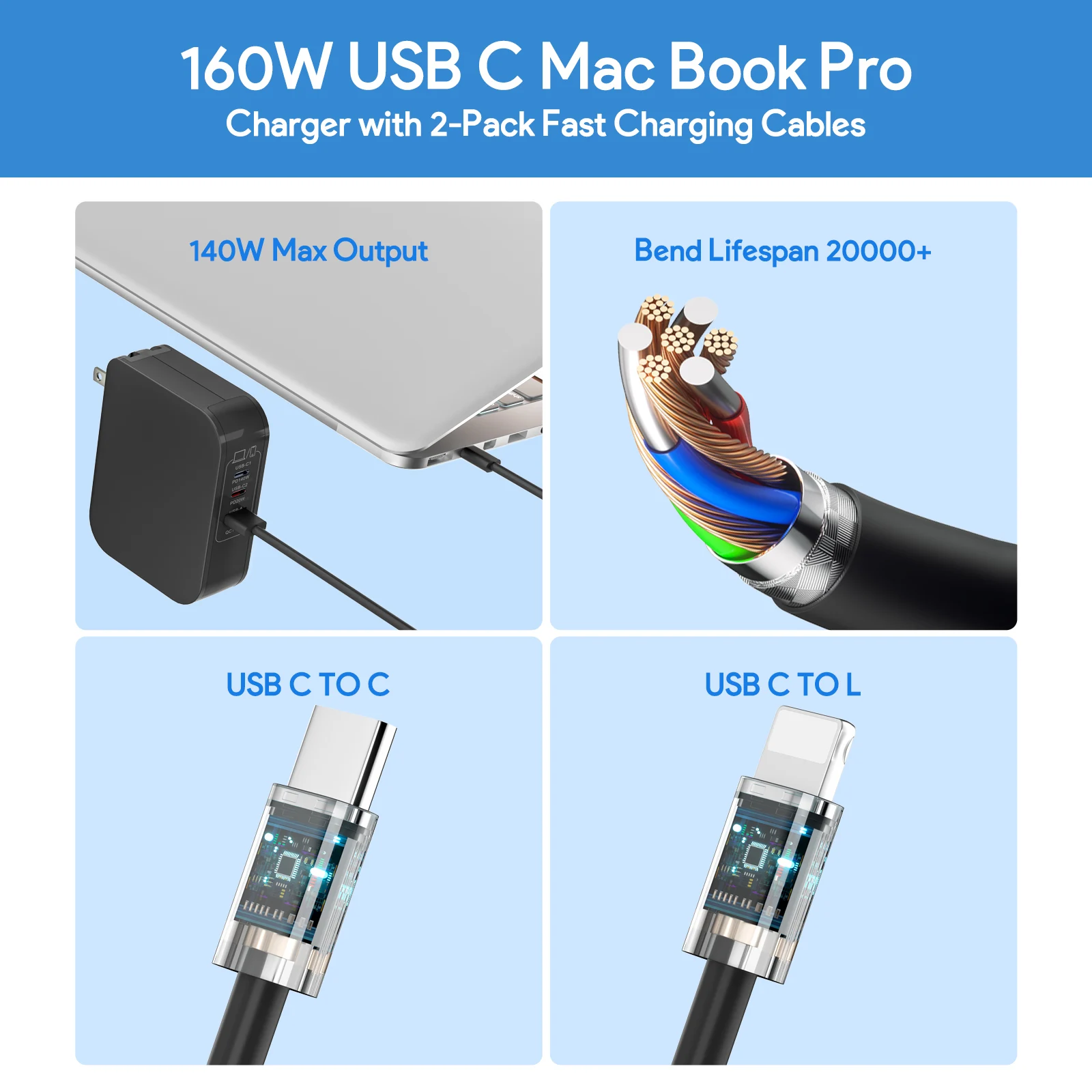 Product Name:160W Power Adapter USB-C/A Charging Station 140W Type-C Laptop Charger | Model Number:PD-160W | Output Power:20 W, 140W |
