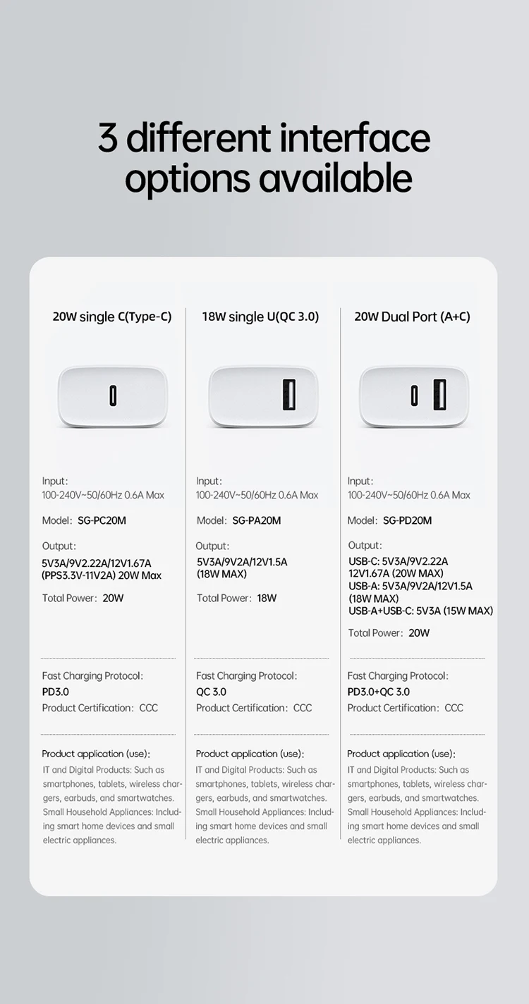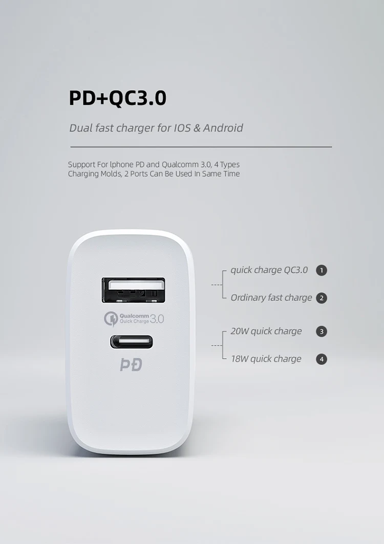 20W PD USB Fast Charger KC PSE Type-c Wall Charger GS UL SAA Certification QC3.0 USB-C Charging Adapter