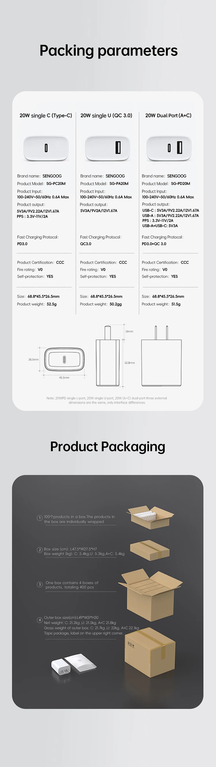 Protection:Short Circuit Protection, ovp, OTP, ocp, Overcurrent, Overvoltage | Model Number:SG-PC20M | Output Power:20 W |