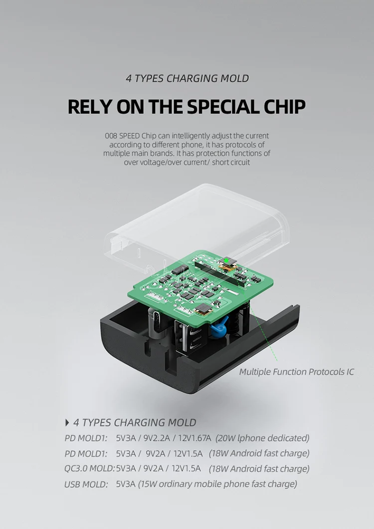 Usage:mobile phone, Earphone, MP3 / MP4 Player, Smart Watch | Output:5V3A, 9V2.2A, 12V1.67A | Warranty:2 Years |
