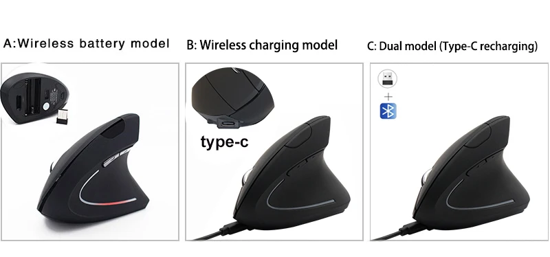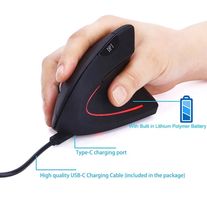 DPI:800-1200-1600 Switchable | Item:Vertical Rechargeable USB Type-C Wireless Optical Mouse | Logo:Customized |