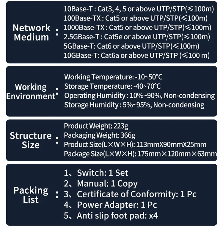 MAC Address Table:4K | Transmission Rate:2500Mbps | Transmission Rate:2500Mbps |