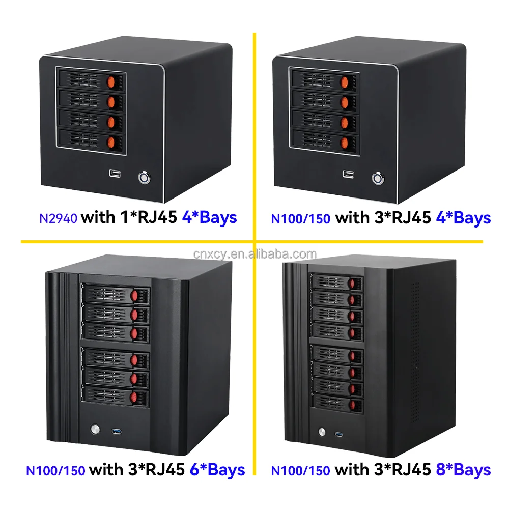 4/6/8 SATA Bays NAS Mini PC Intel N100 N150 2.5G I226V 10G AQC 3LAN Ethernet RAID Network Attached Storage Server