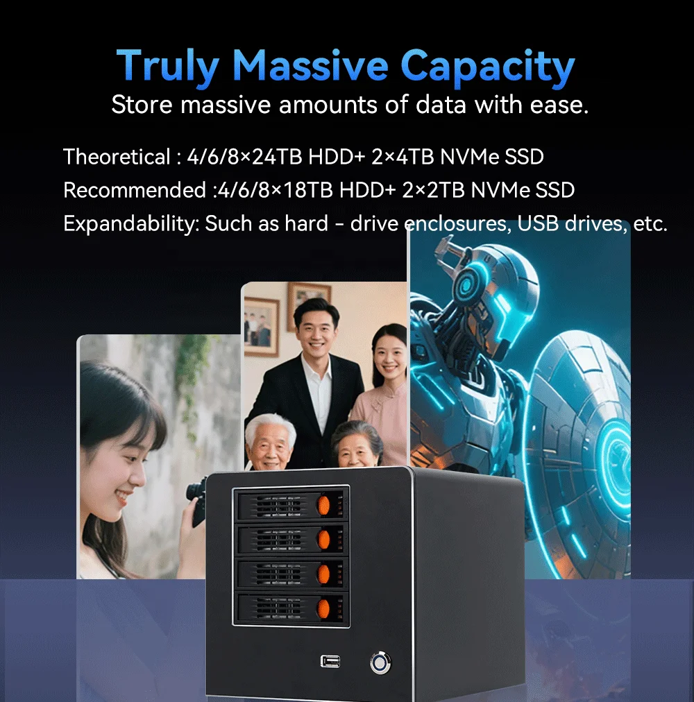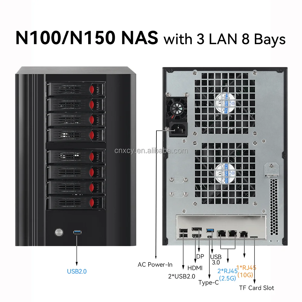 TF Card Slot:N100/N150 NAS 4/6/8 Bays | Video Memory:With main memory | Model Number:X108 NAS |