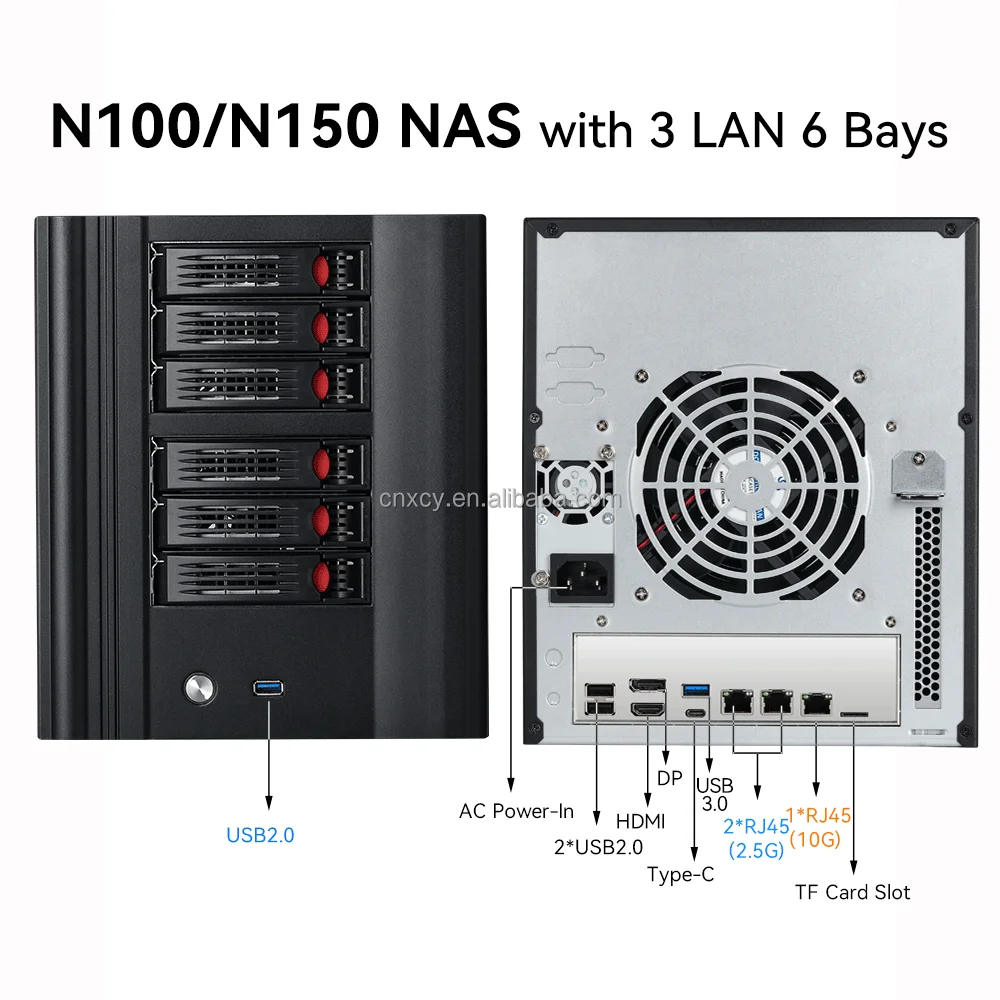 Home>Computer Hardware>4/6/8 SATA Bays NAS Mini PC Intel N100 N150 2.5G I226V 10G AQC 3LAN Ethernet RAID Network Attached Storage Server
