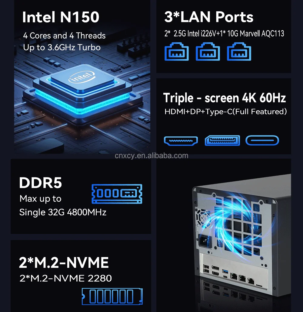 Use:For Data Storage Cloud Cinema Home Sharing | Ethernet:2*Intel I226-V + 1*Marvell AQC113 | Features:Support wake-on LAN, Auto Power on |