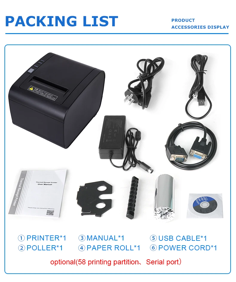 80mm Receipt Printer Hot Sale USB Serial and Wifi Optional Thermal Printer
