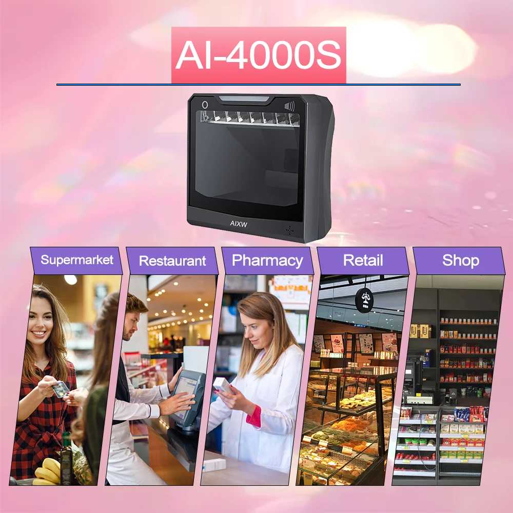AIXW 1.3 Million Pixel Desktop Barcode Scanner 2D CMOS 2800 Scans Fast Scan Speed Support POS System Win and Android