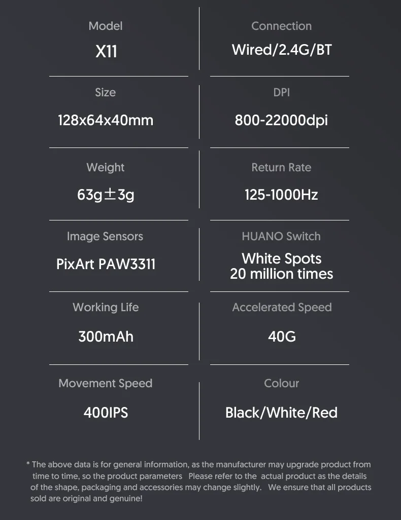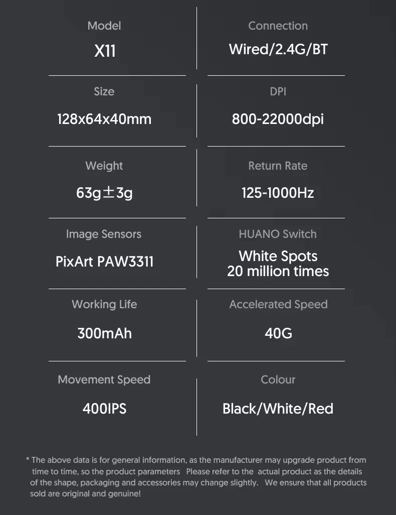 Sesor:PAW3311 | Style:Gaming, Programmable | Weight:about 63g |