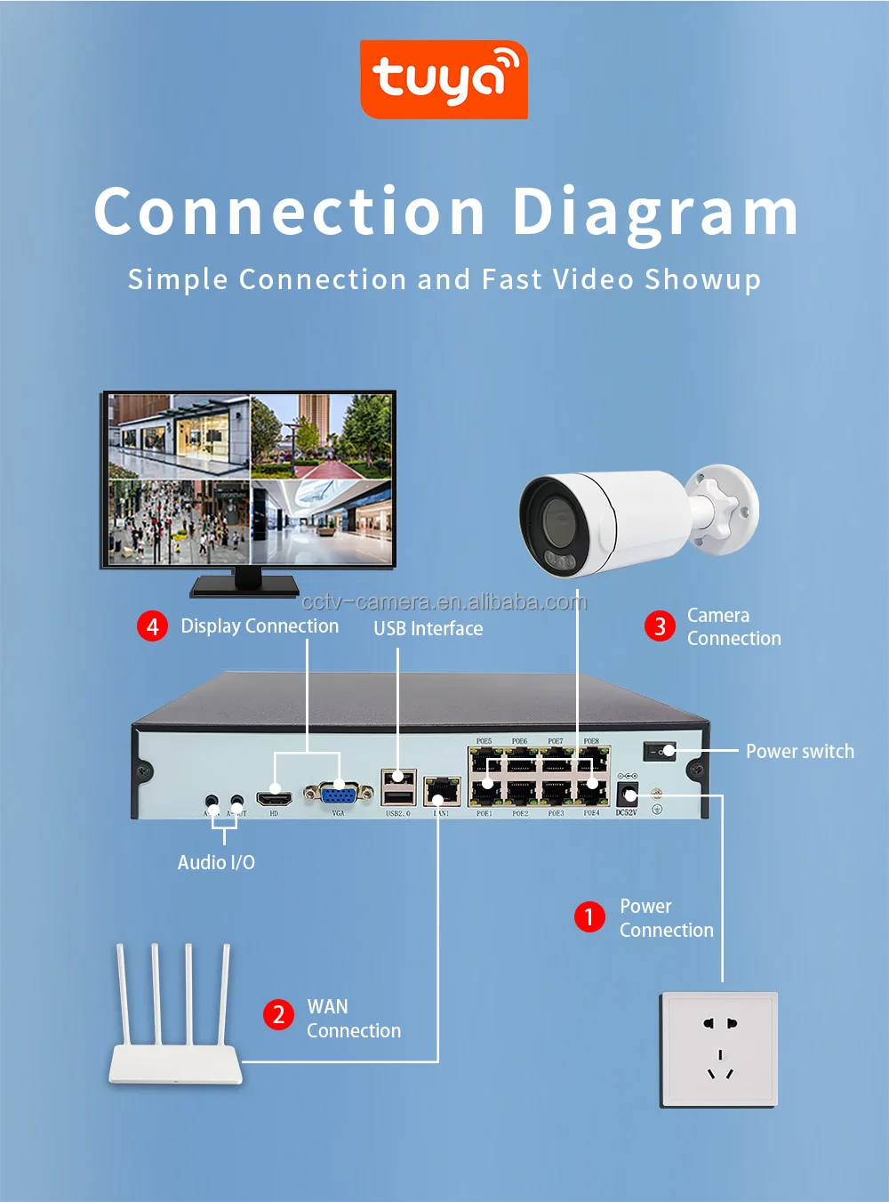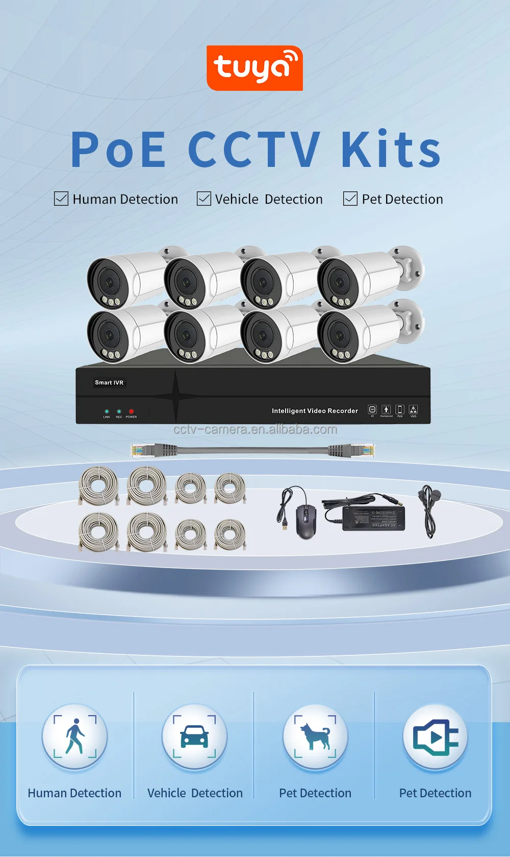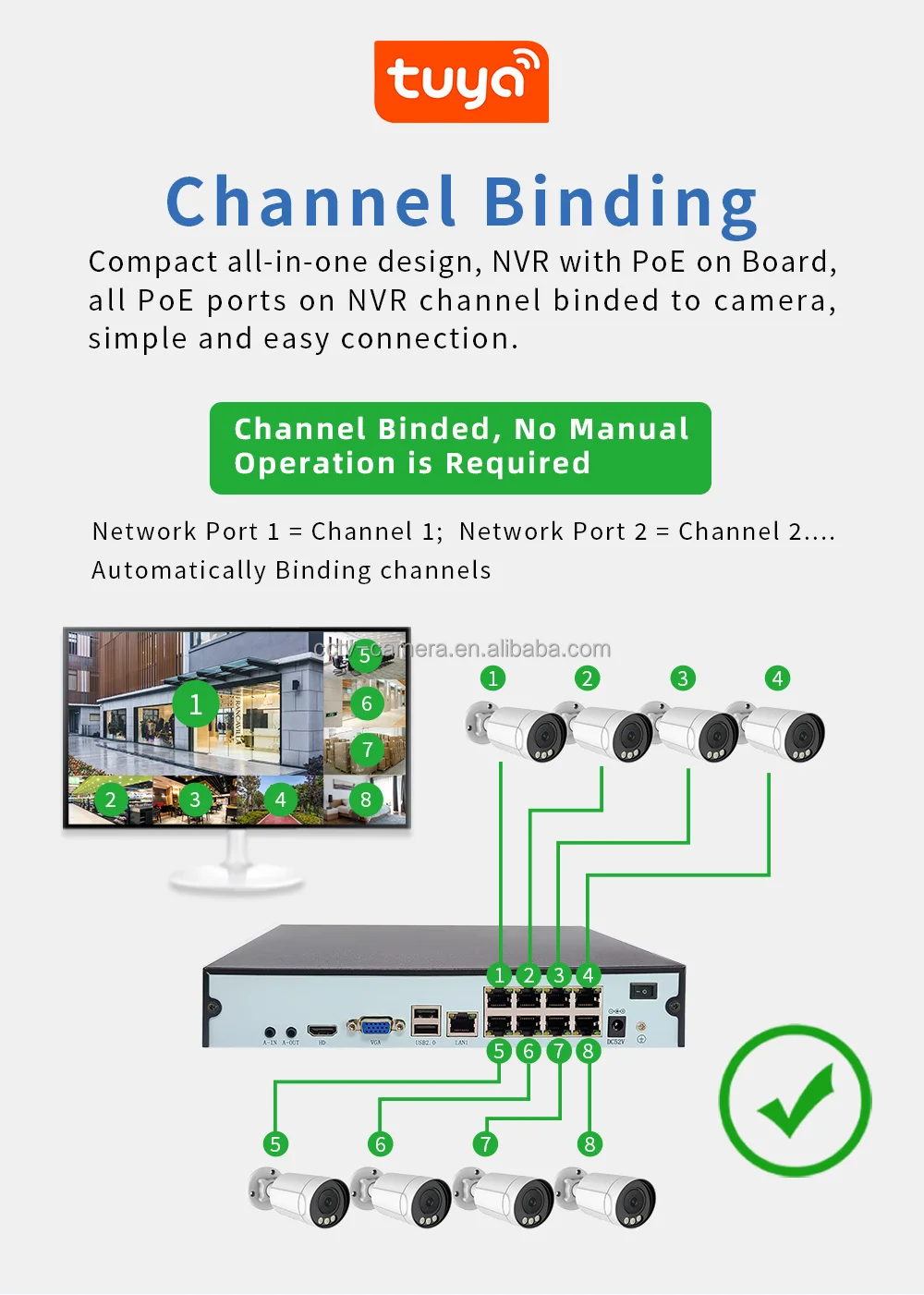 NVR:POE + 4K | P2P:Tuya App | PoE:Built-in |