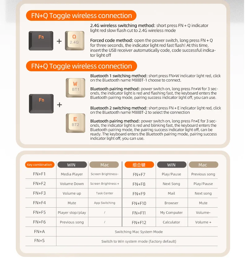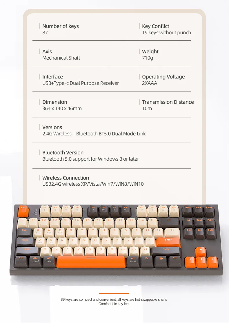 Material:ABS | Item Name:Free Wolf M88 Wireless BT Dual Mode Mechanical Keyboard | Mechanical:Yes |