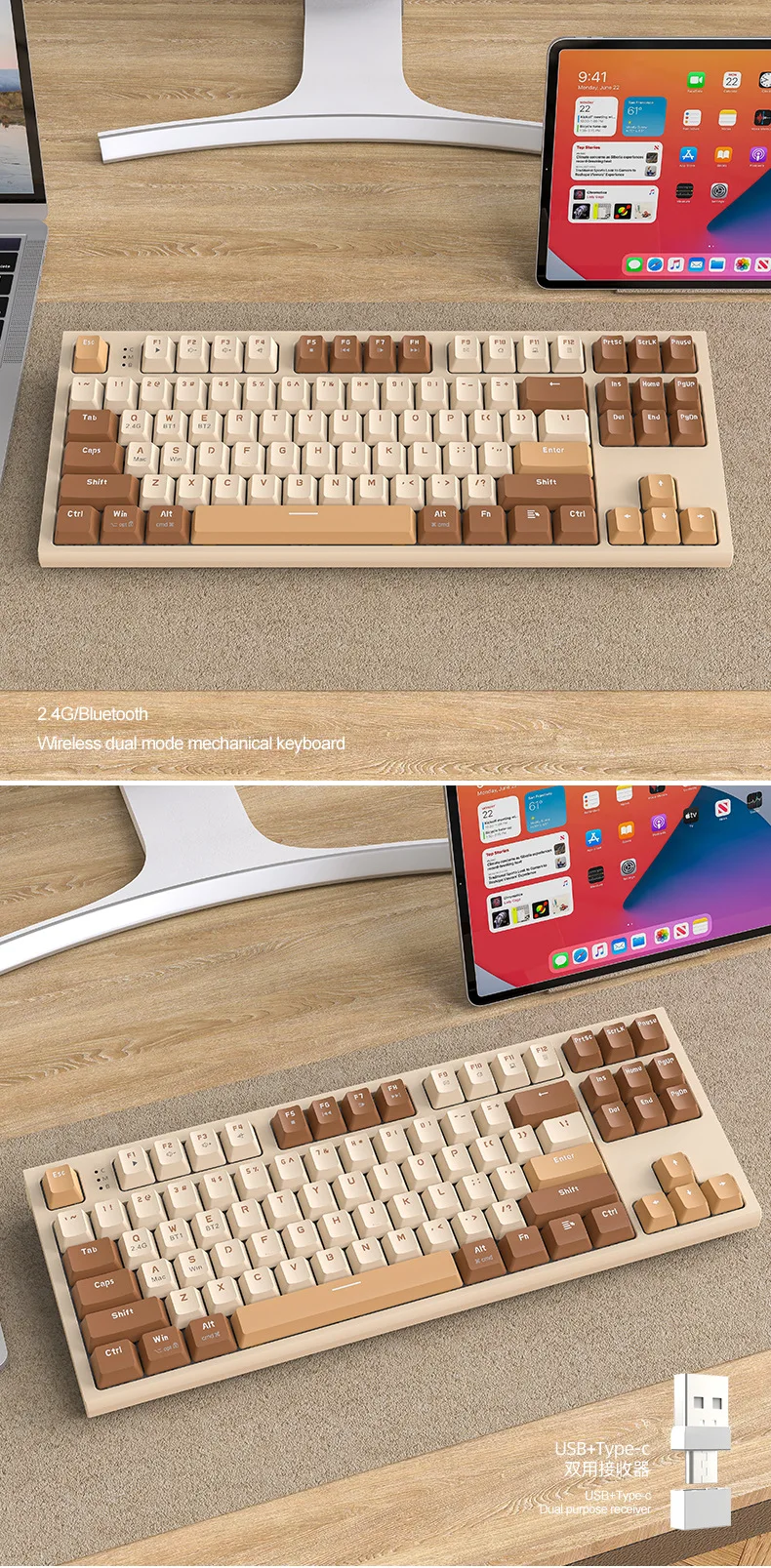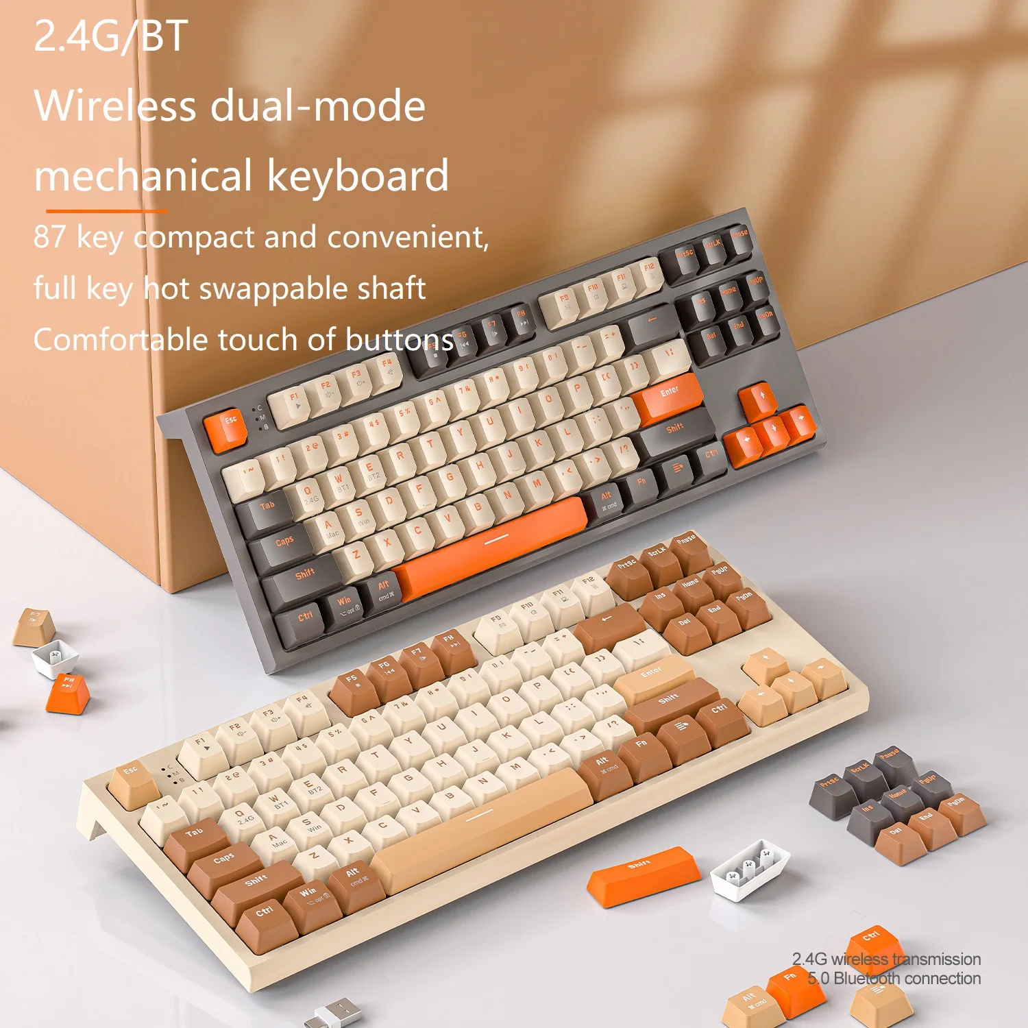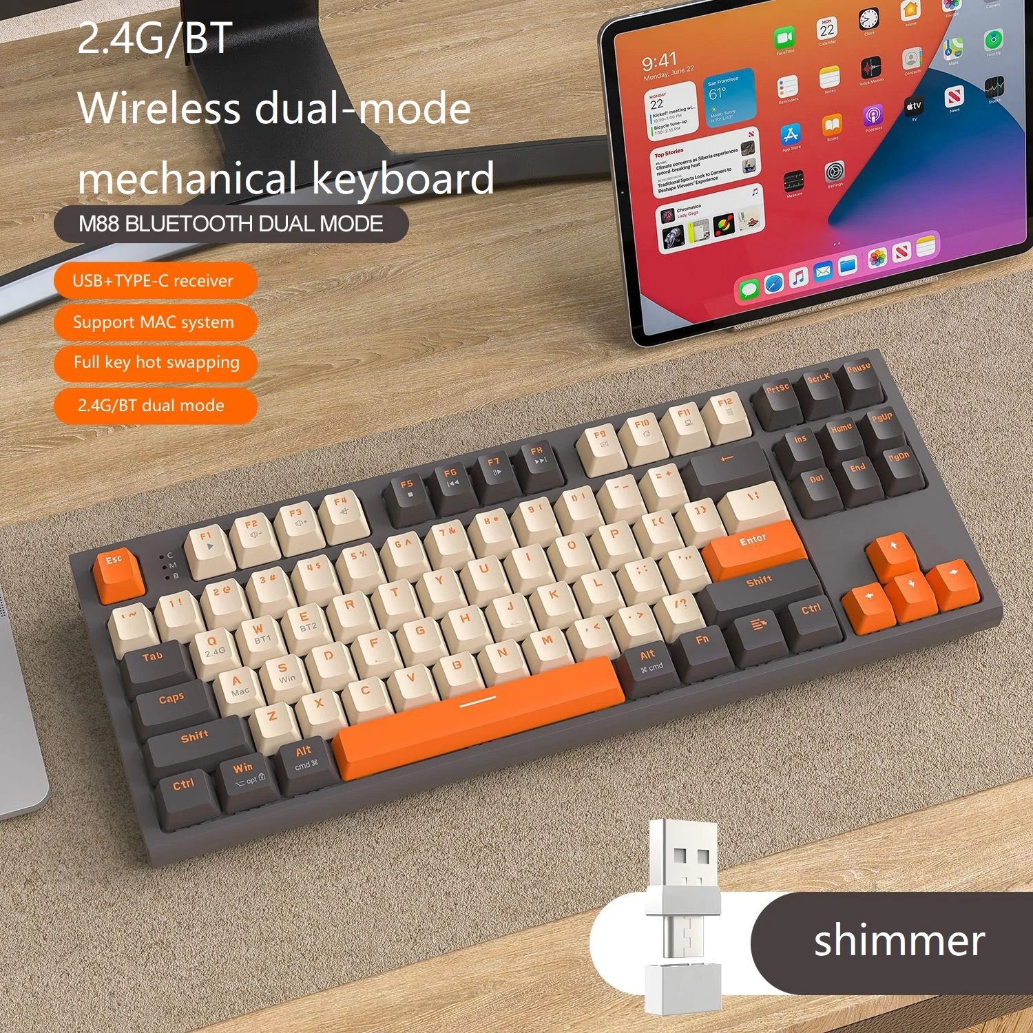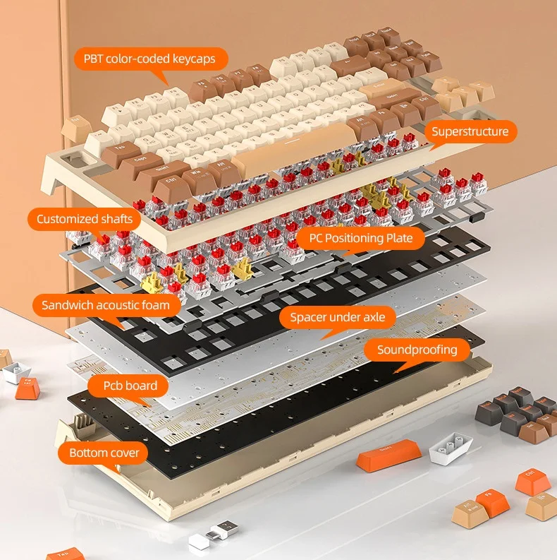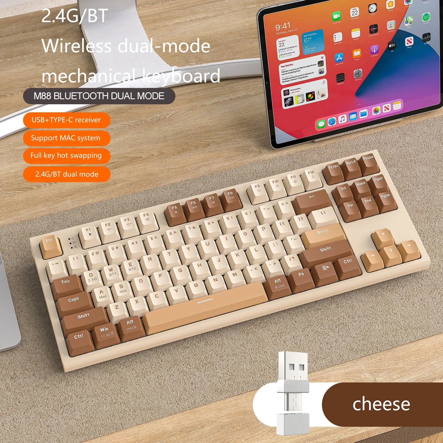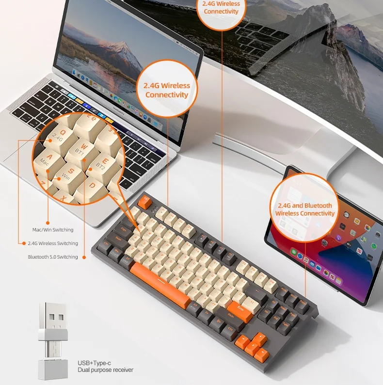 Esports Game Office PBT Ball Key Hat Notebook Keyboard Free Wolf M88 Wireless BT Dual Mode Mechanical Keyboard