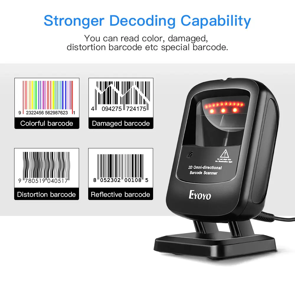 Eyoyo EY-2200 High Precise Long Range USB Wired POS PDF417 QR Bar Code 2D Desktop Barcode Scanner for Supermarket Shopping Mall