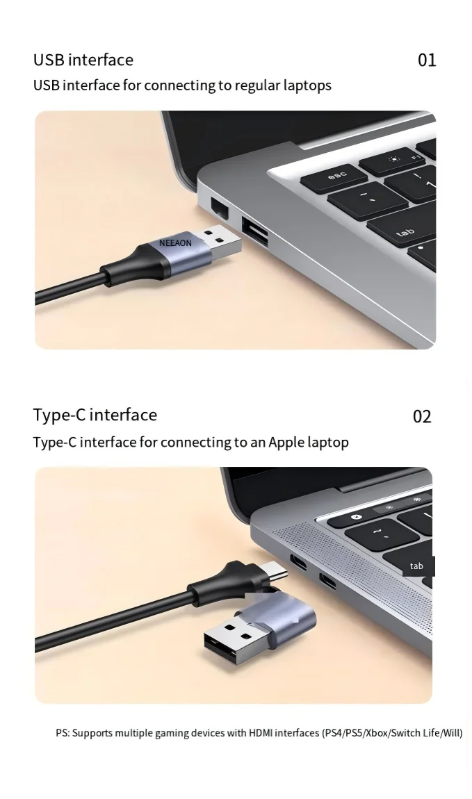 HDMI Video Capture Card for 4K High-definition Input, Suitable for Computers, Mobile Phones and Tablets, Converts to USB/Type-C