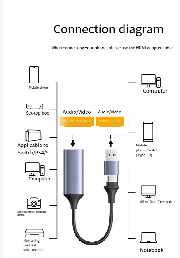 Home>Accessories>HDMI Video Capture Card for 4K High-definition Input, Suitable for Computers, Mobile Phones and Tablets, Converts to USB/Type-C