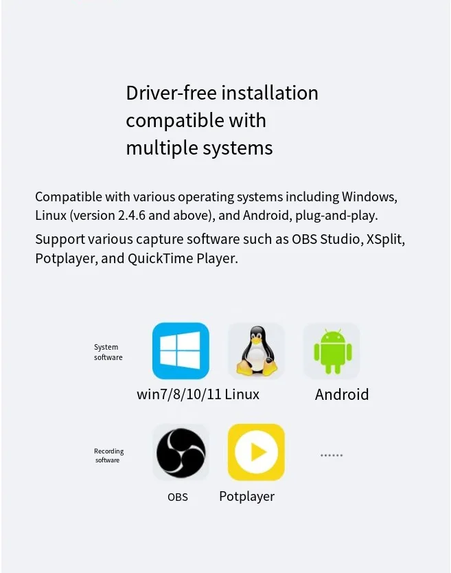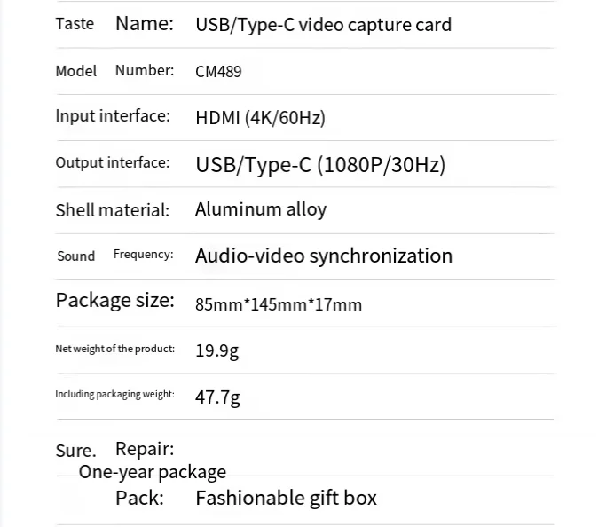 Place Of Origin:China | Support Systerm:Windows 10, Android 5.0 or above, QuickTime Player, XSplit | Output Interface:Type C, USB |