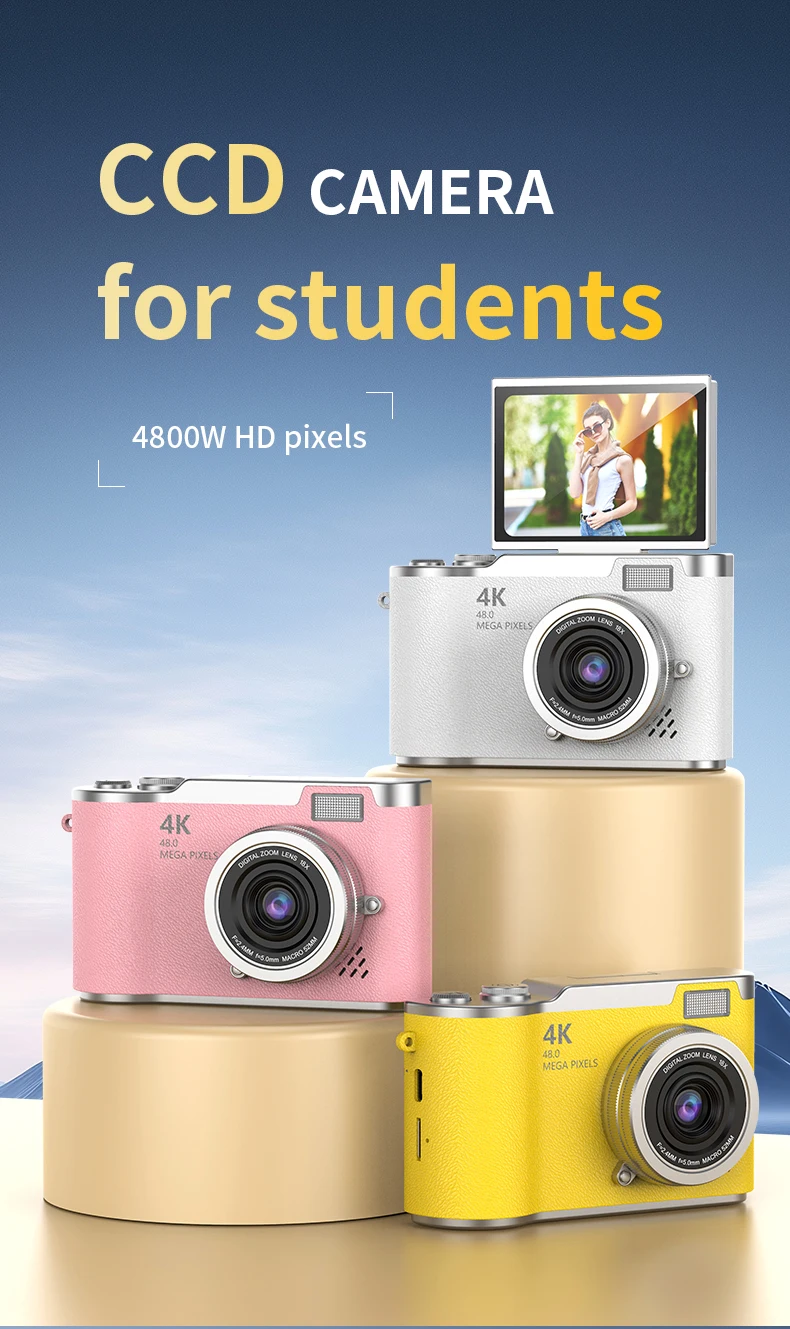 High Definition Mini Digital Camera for Kids TF Card Camera Rotates Instant Print CCD Imaging Sensor for Selfies