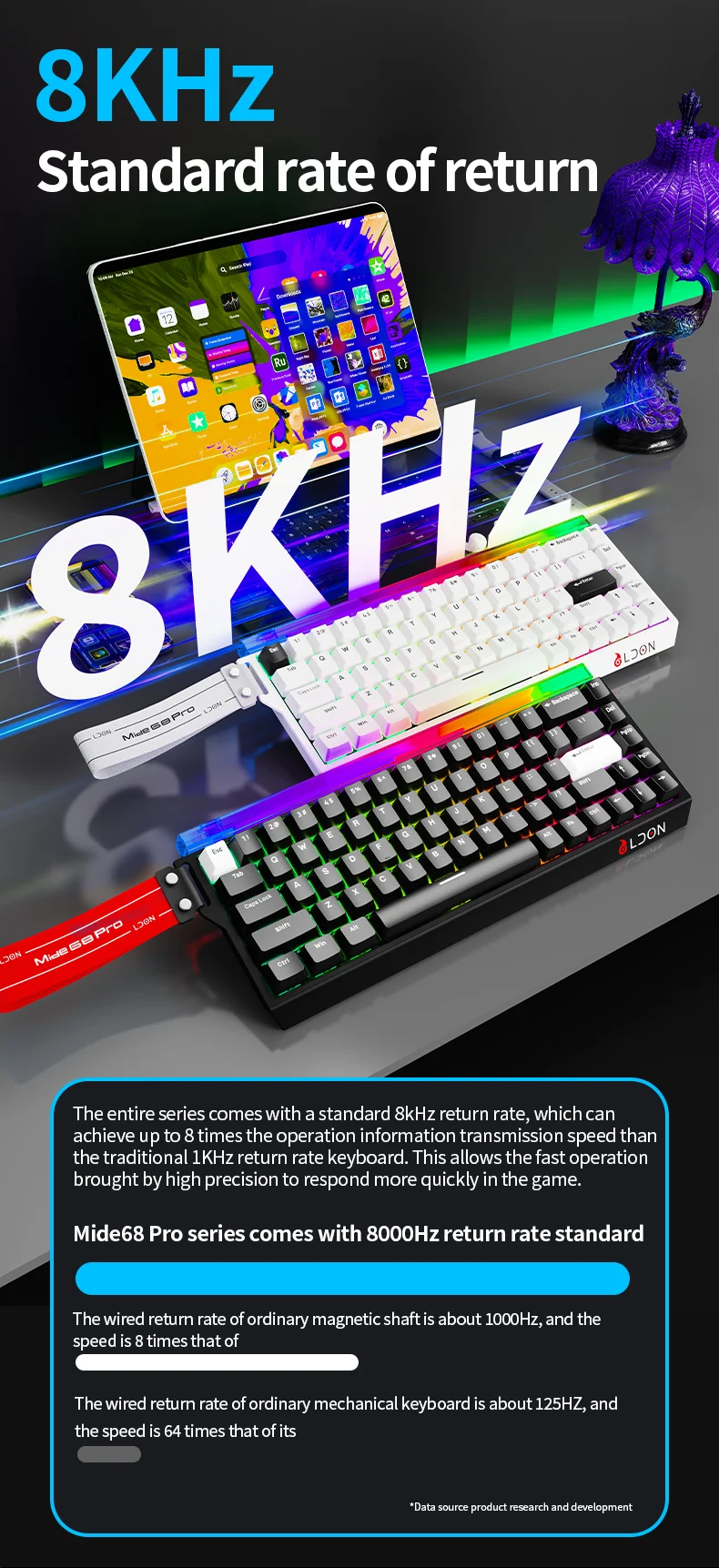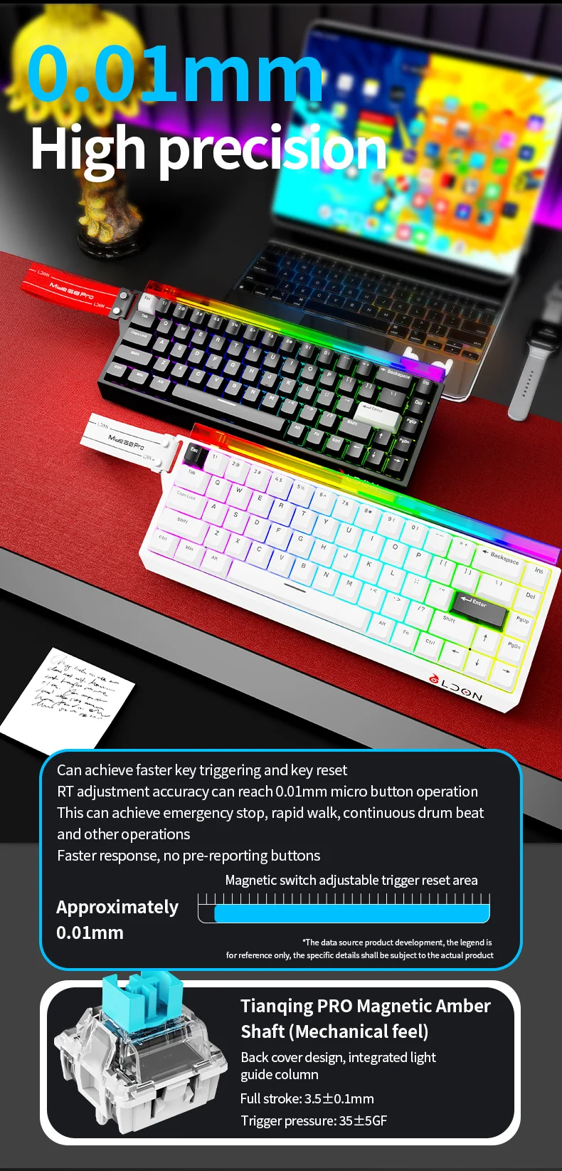 LDON 68pro New Model RGB Wired Keyboard 8KHz Polling Rate Magnetic Switches PBT Keycaps Aluminum Alloy USB for Desktop Use