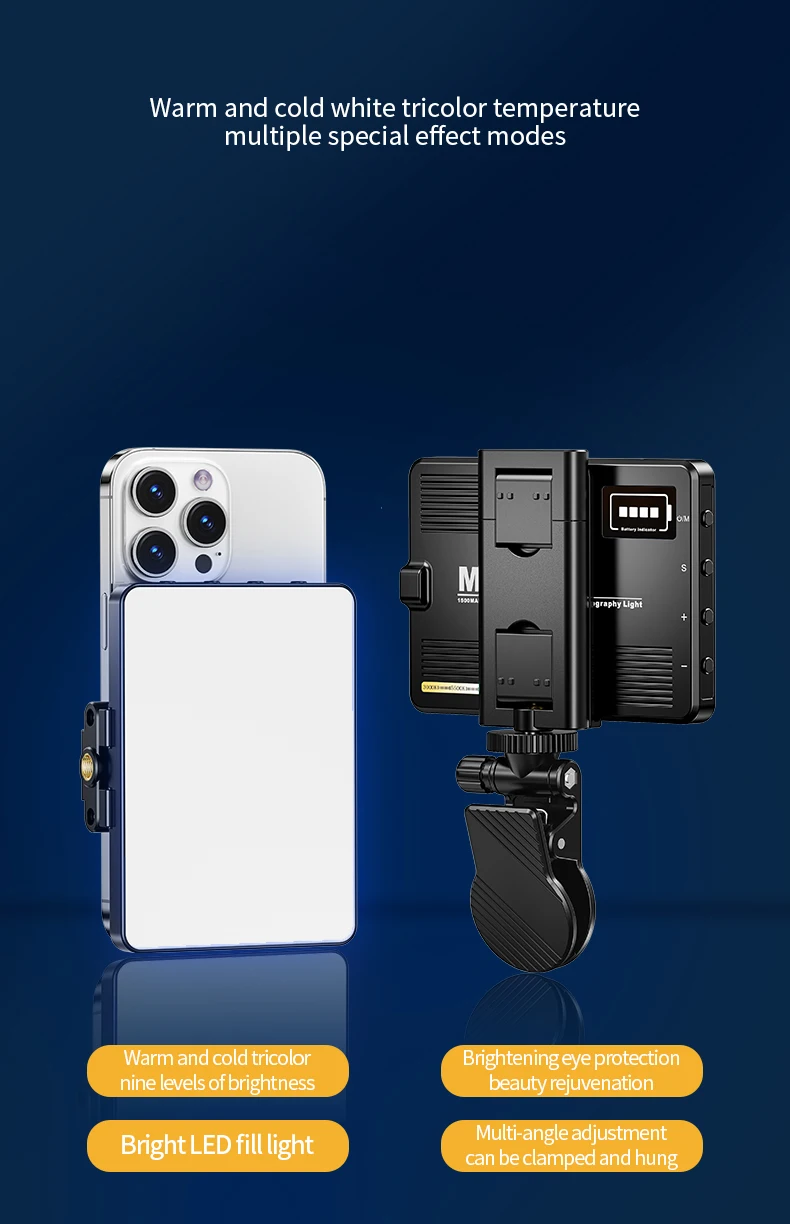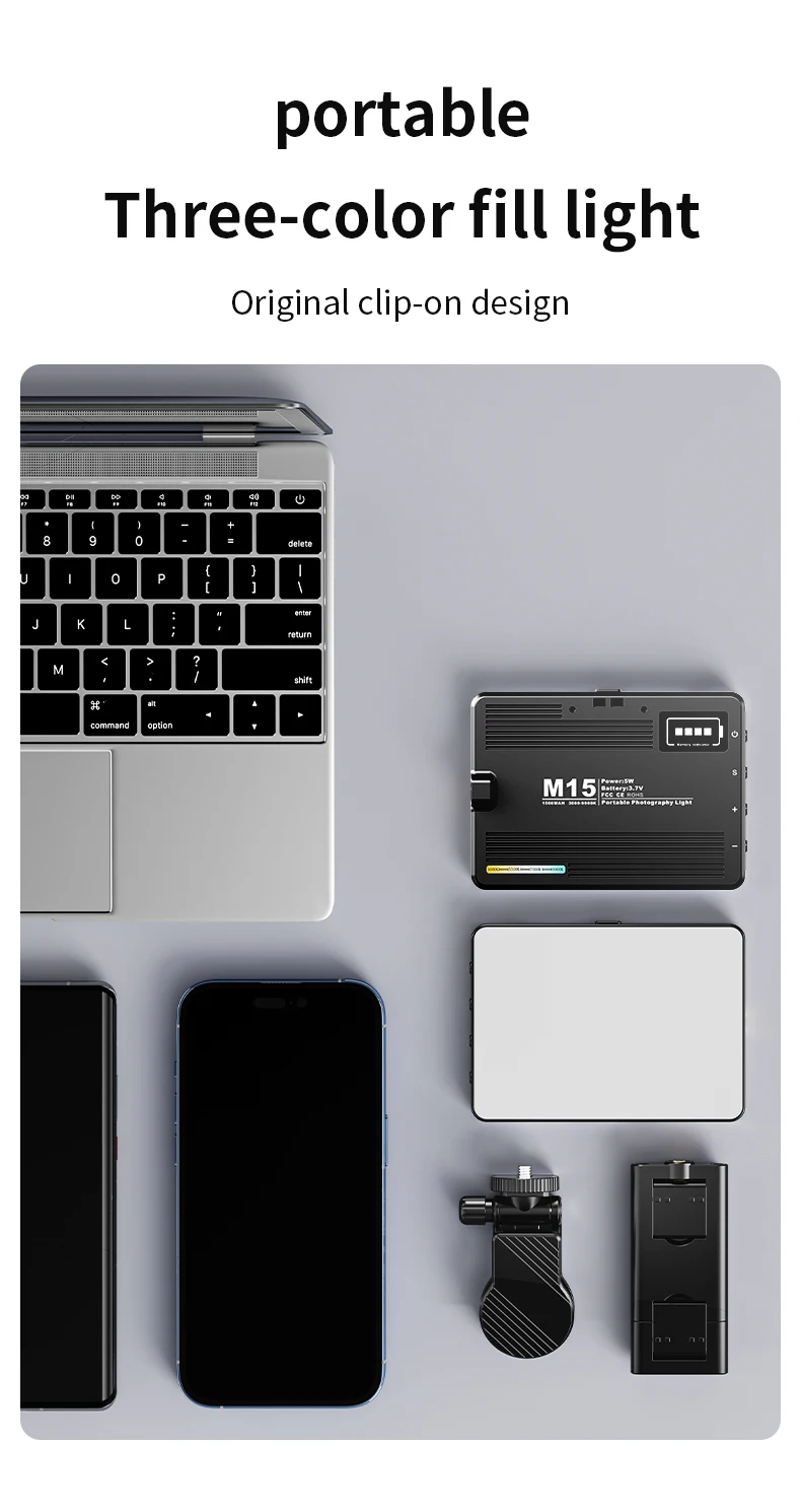 M15 Rechargeable Square Photography Phone Clip LED Fill Light Streaming Makeup Webcam Lighting Zoom Call Pocket Video Light