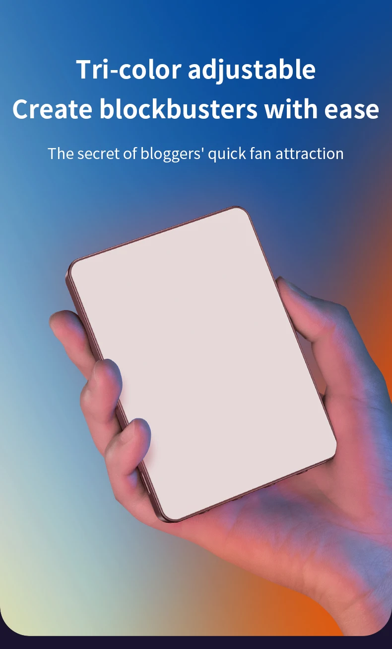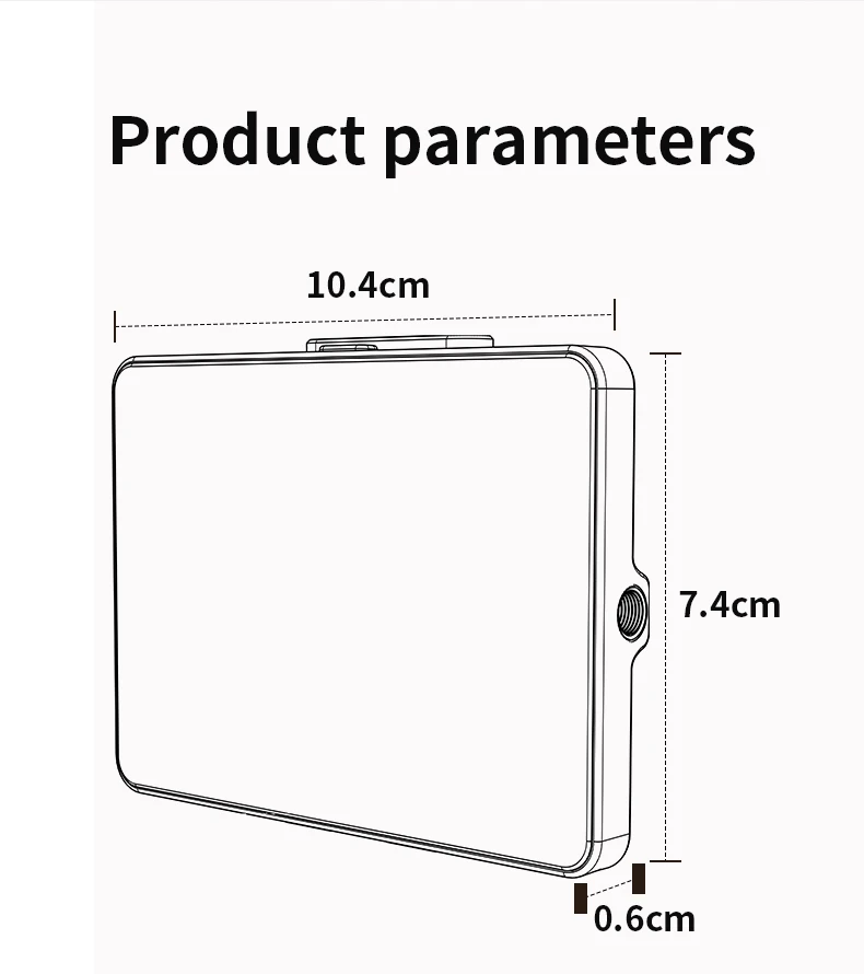 Control Mode:Switch Control | Product Size:10.7*6.7*1.7CM | Product Name:Rechargeable RGB LED Phone Studio Selfie Fill Light |