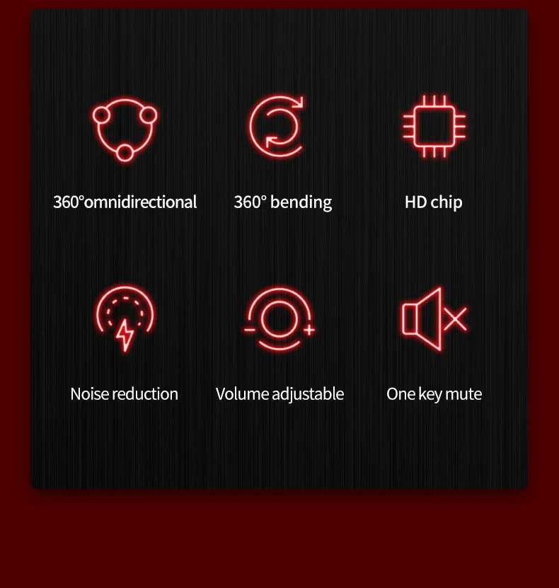 Feature:Noise Cancelling, Light-weight, Condenser Microphone, With LED Lights | Material:ABS+Metal | Mic Size:9.7*6.7mm |