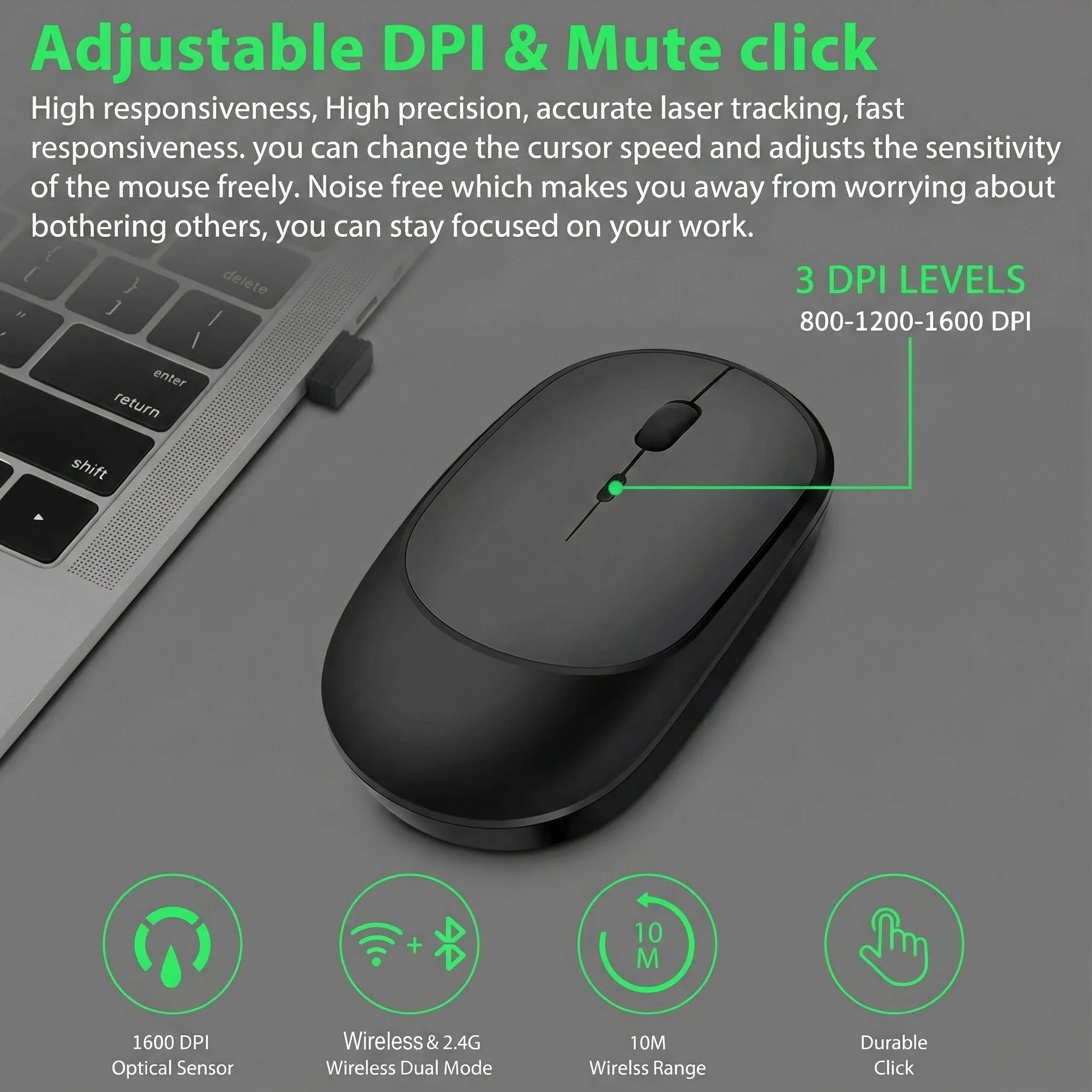 Rechargeable Mouse Dual Modes Blue Tooth5.2 2.4G USB Mute Wireless Mice Wireless Mouse for Computer Laptop Tablet Macbook