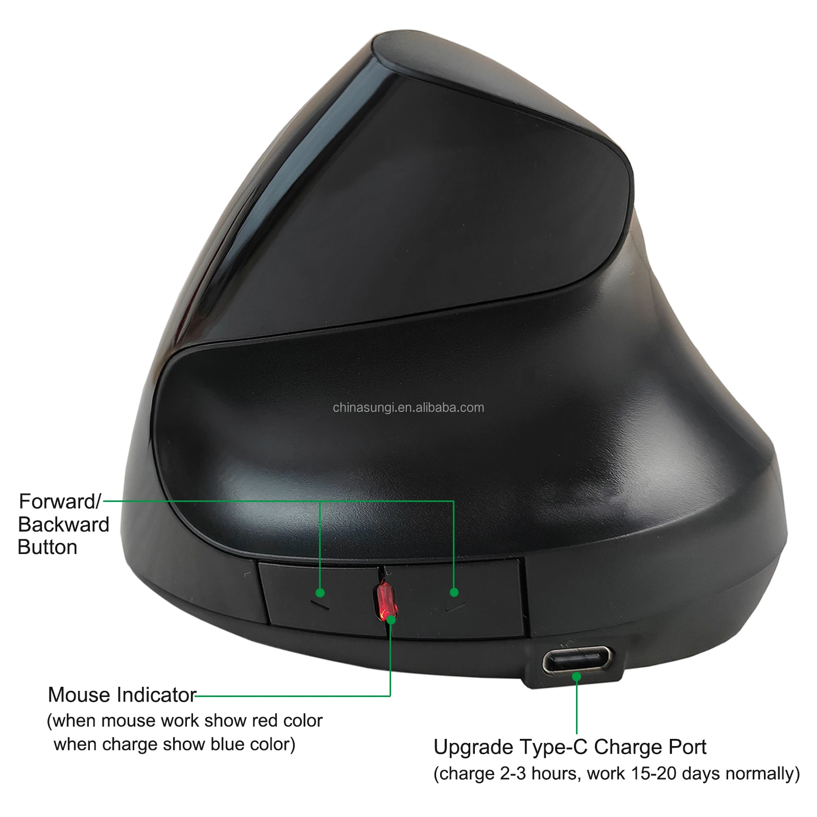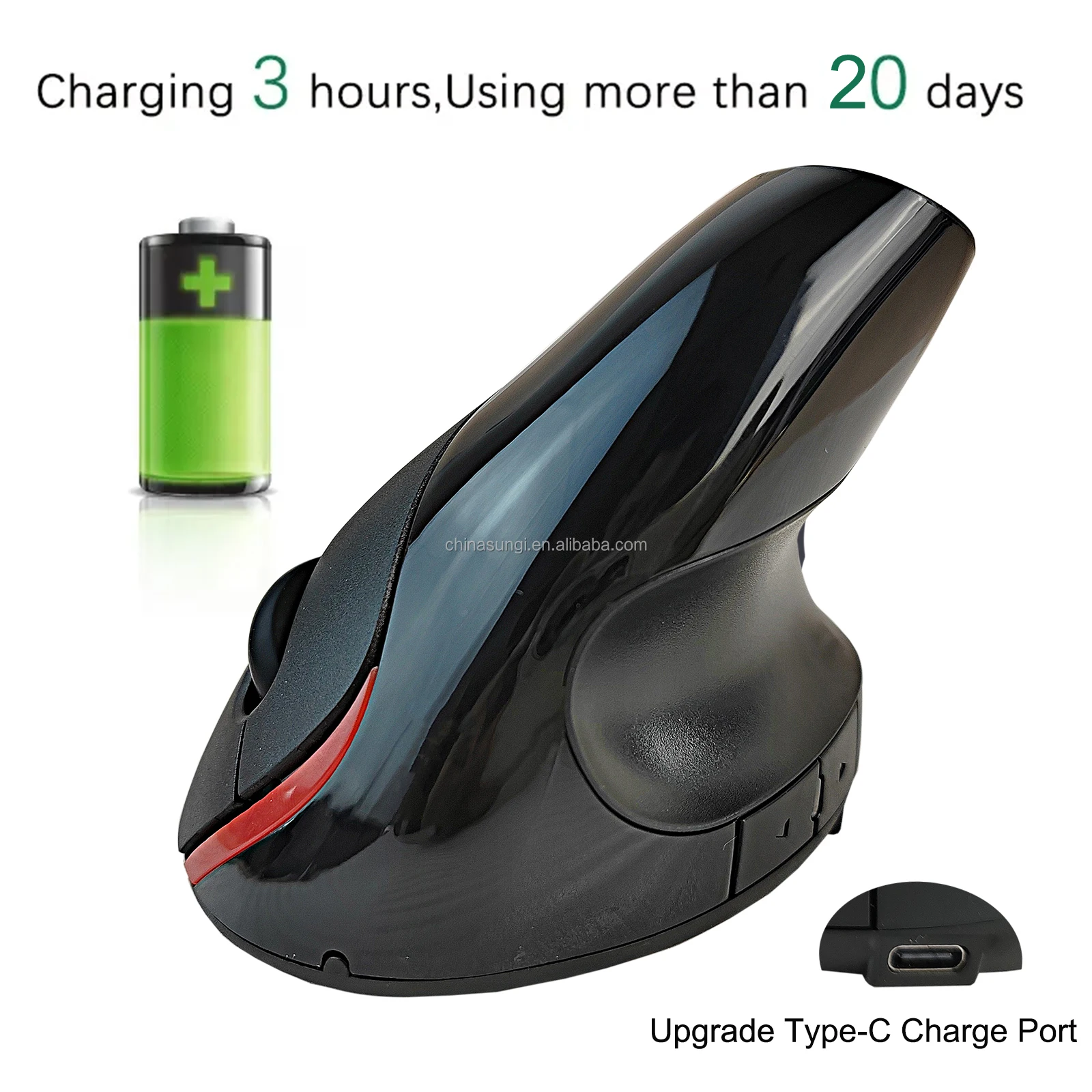 SUNGI S6 Wireless Ergonomic Vertical Mouse Rechargeable CE ROHS Certificate 1000 1200 1600 DPI Personal Customize Provide