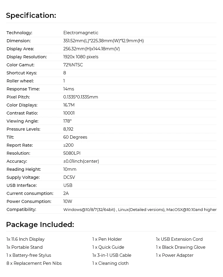 Single Gross Weight:4.500 kg | Single Package Size:44X29X12 cm | Pressure Sensitivity:8192 levels |
