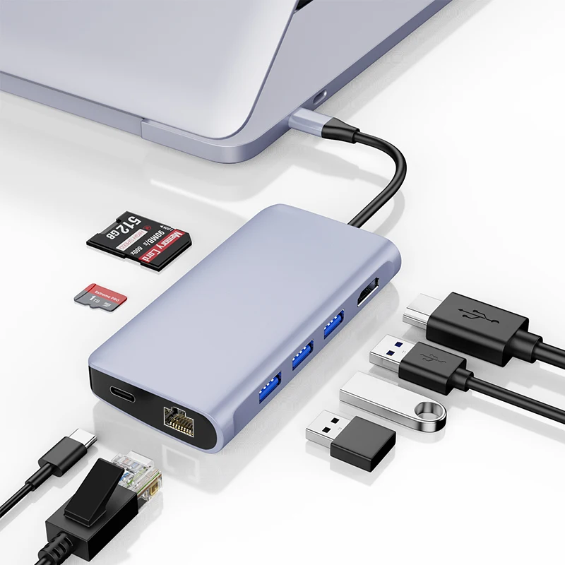 8 in 1 hdmi Hub 4K HDMI RJ45(1000Mbps) 3USB 3.0 PD Fast Charge SD/TF Reader Usb c Laptop Adapter Splitter Docking Station