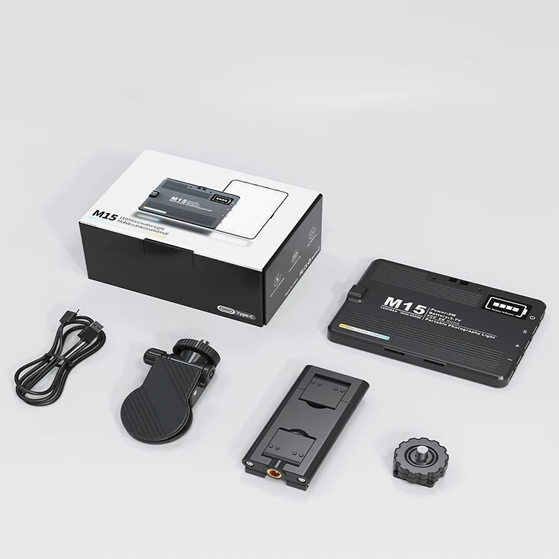 M15 Rechargeable Square Photography Phone Clip LED Fill Light Streaming Makeup Webcam Lighting Zoom Call Pocket Video Light